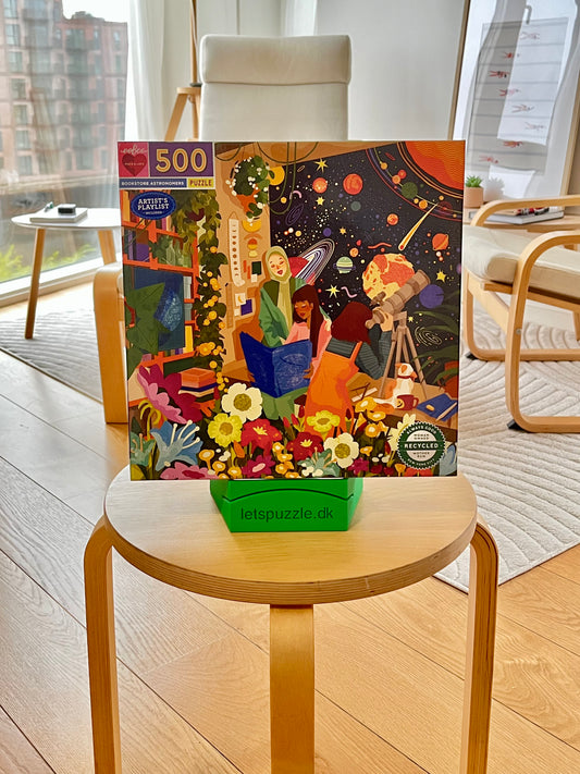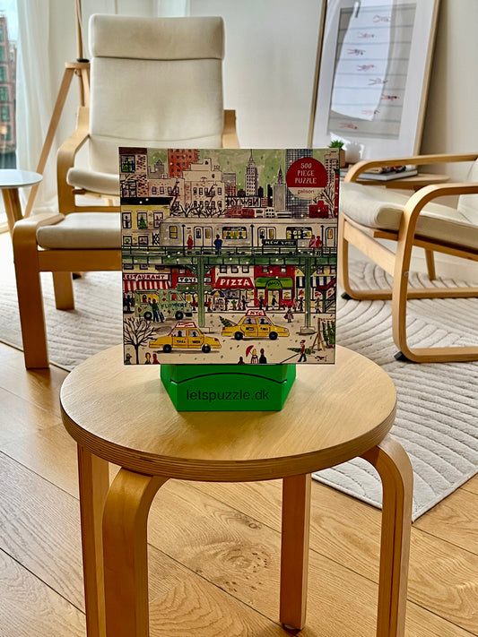 Every rental includes accessories to puzzle like a pro: a box holder, sorting trays, and a puzzle board!