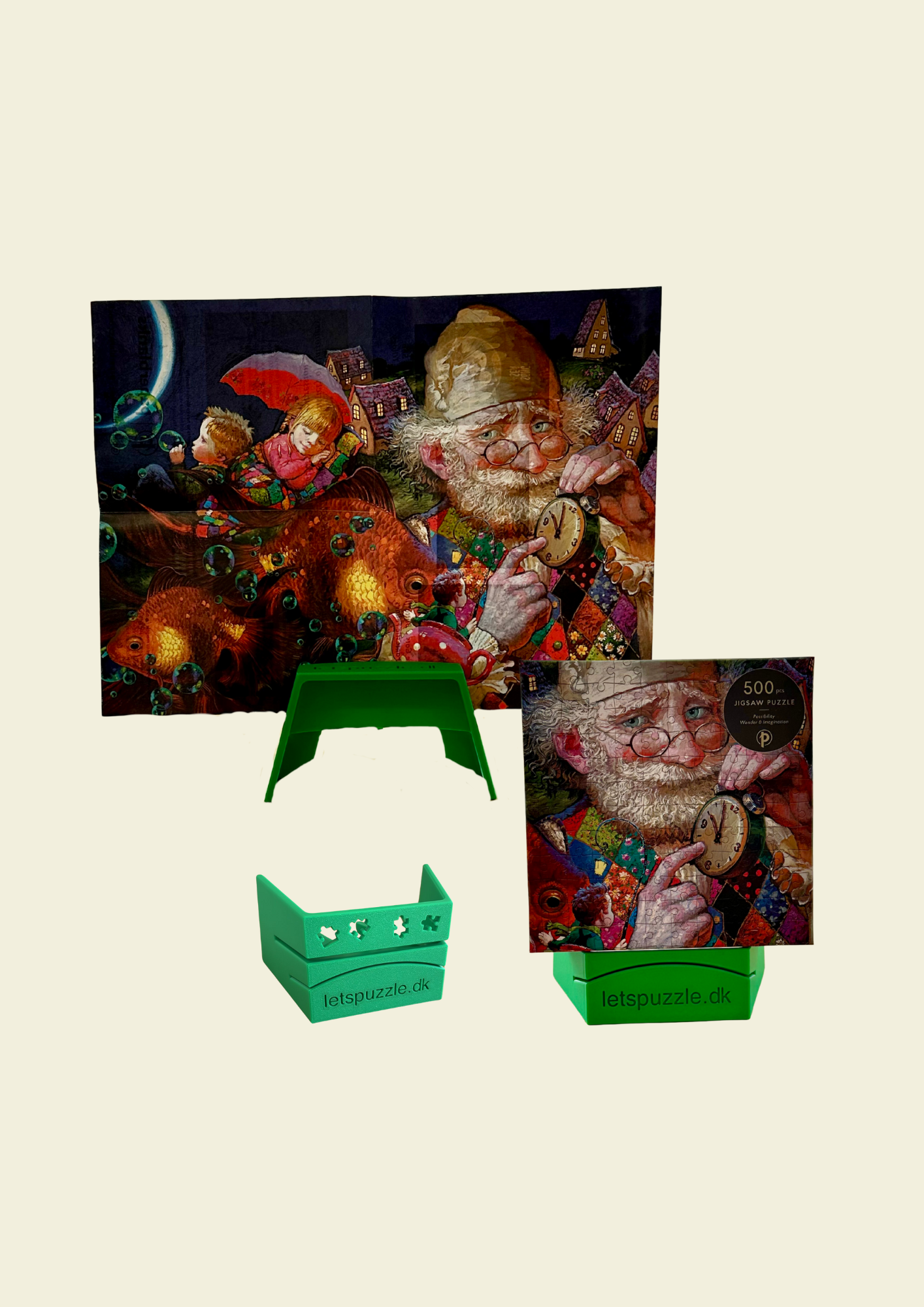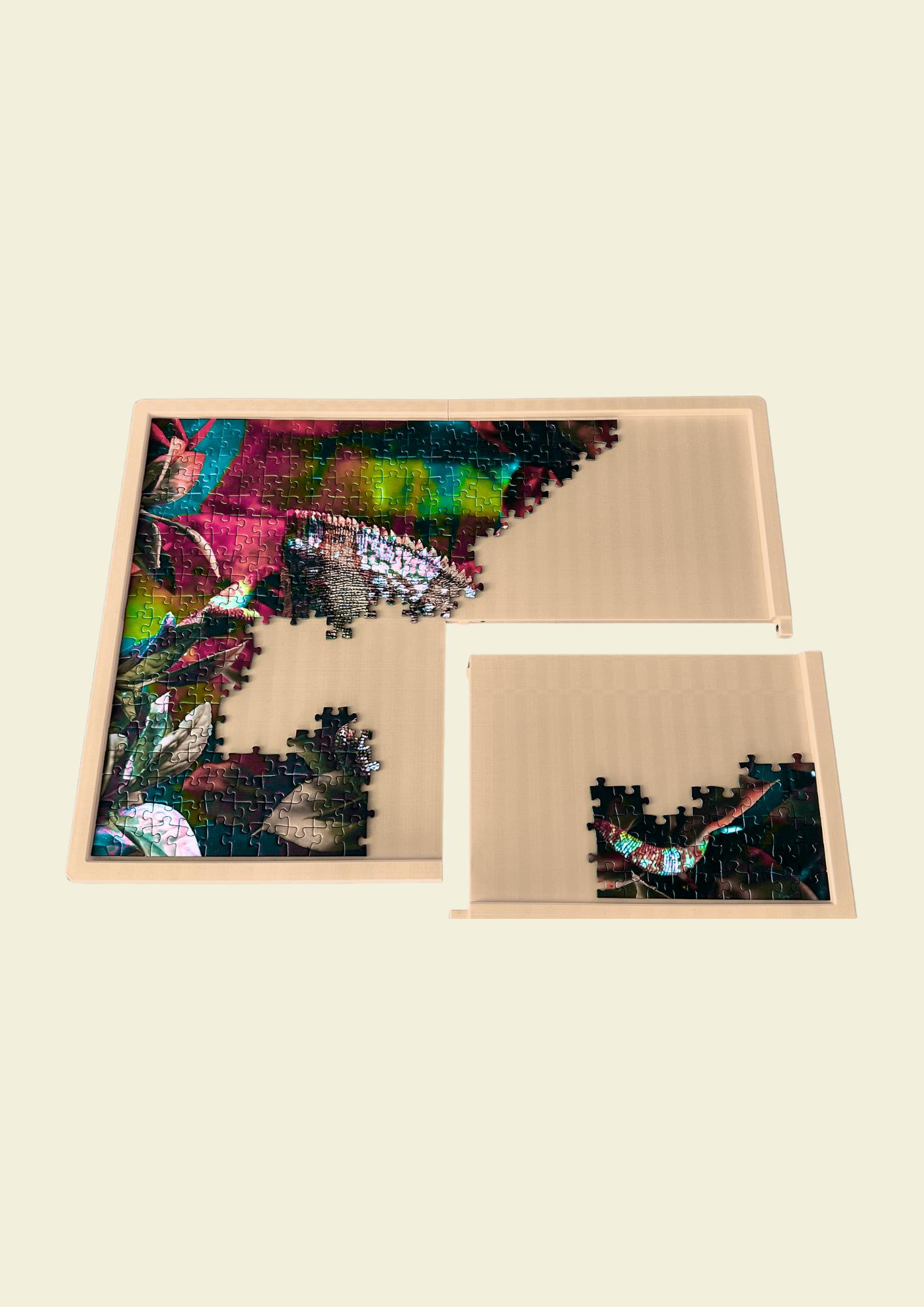 A puzzle board for people who live normal lives — where the dining table is also the puzzling table. Snap together the four PLA-made pieces for a smooth and portable puzzling surface.